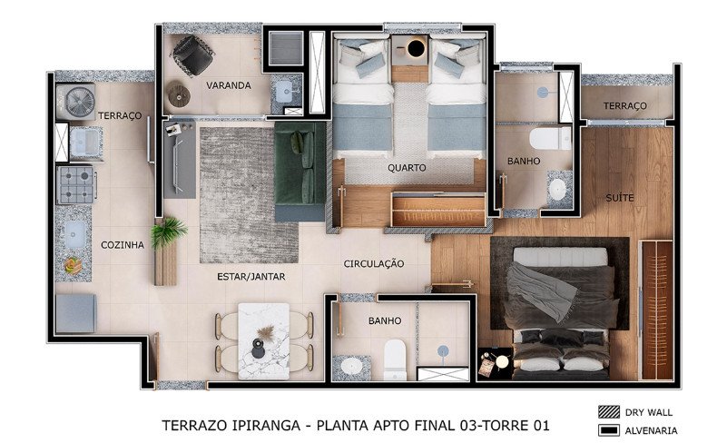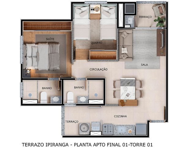 - Área Privativa: 51,29 m²