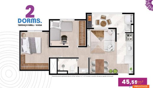 - Área Privativa: 45 m²